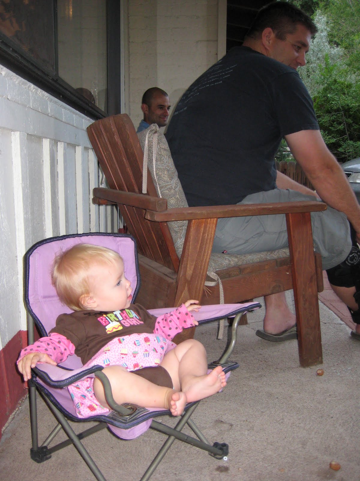 Here's a 6 minute video of Annie's 1st Birthday Party. We invited a few families that especially love Annie and asked them to sing her a song instead of bringing a present. We had a fun night and Annie was a very gracious hostess. She doesn't seem to like cake and frosting that much (yet) but LOVES bananas and ice cream, so I made her a banana split ice cream "cake" (recipe from Family Fun magazine).