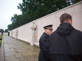 We tried to hitchhike back to the cemetery but those proper Brits (who also like to speed on rural roads) wouldn't have it, so we walked probably over a mile...and Jeremy was wearing his one pair of shoes--Doc Martens--that were not fully broken in. The cemetery was closing, but we happened to catch some kind American retired military personnel who gave us a lovely tour. It was touching and inspiring to think of the sacrifice that so many Americans gave for freedom, not even in their own country. Many of the fallen were pilots and air crews because of the bombing raids into Nazi territory at the end part of WWII.